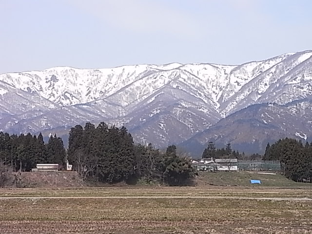 我が町の近くの山々は まだまだ雪が残っています