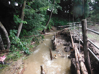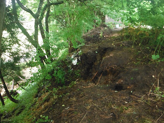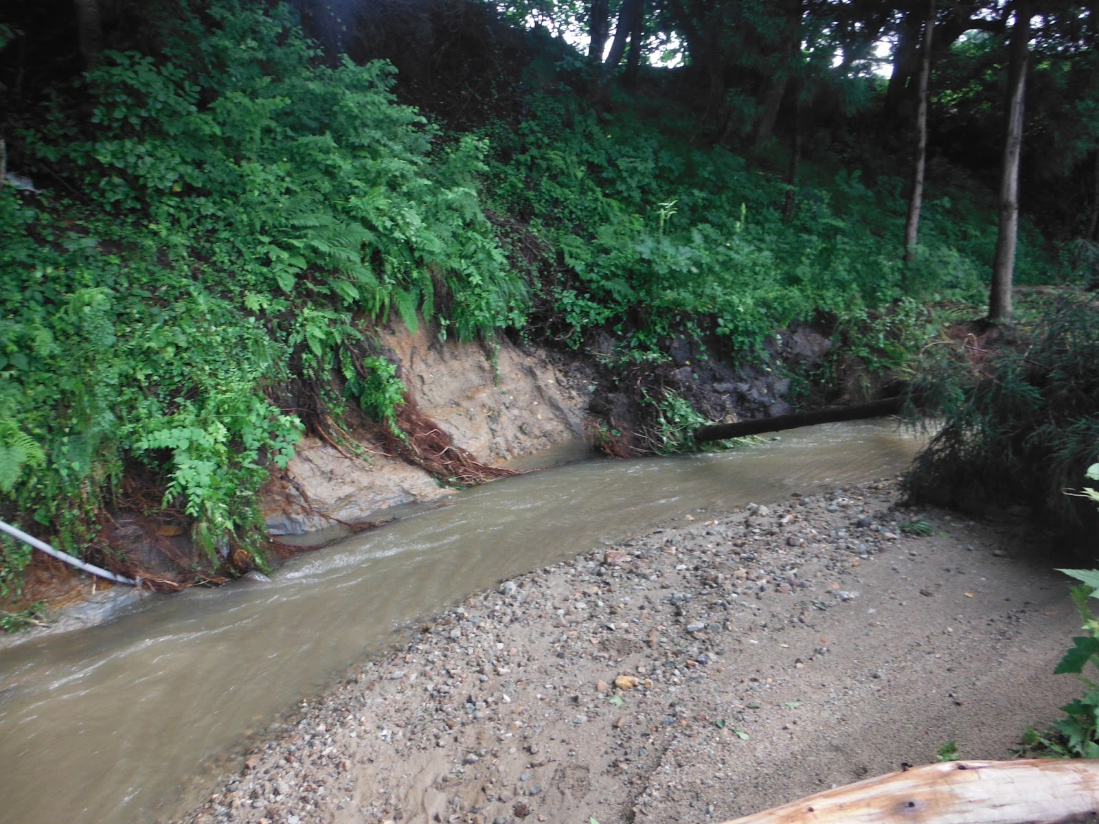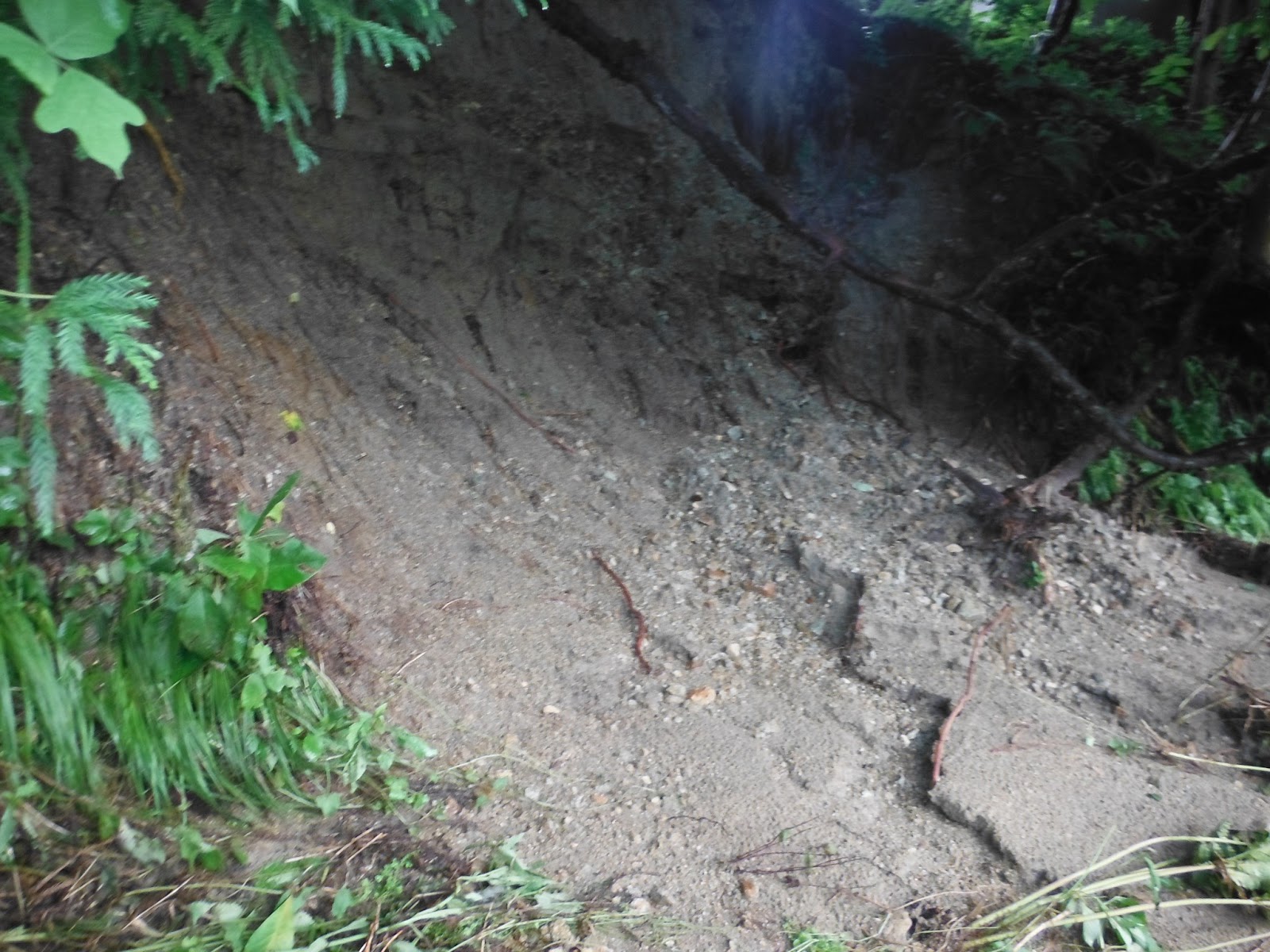 大幅に削られています。 上の 車庫が 崩れ落ちるのが 心配です。