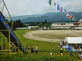 突入の 様子で 近辺の 山々には 冬つげの雪が 残って