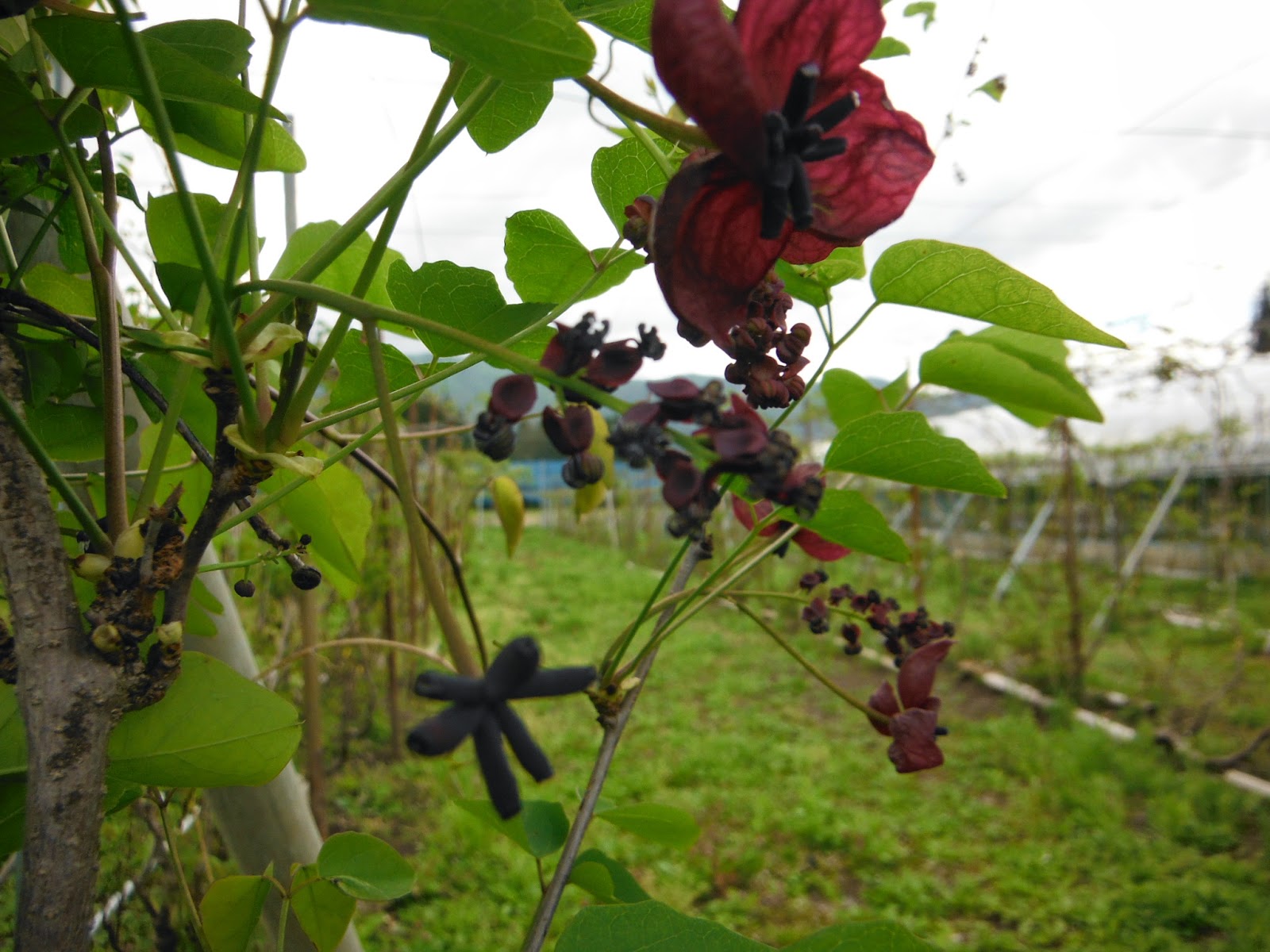 アケビの花も 満開になりました。