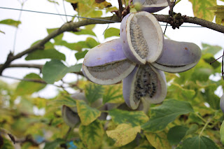 アケビも 少しずつ 色付き始めましたが まだまだ